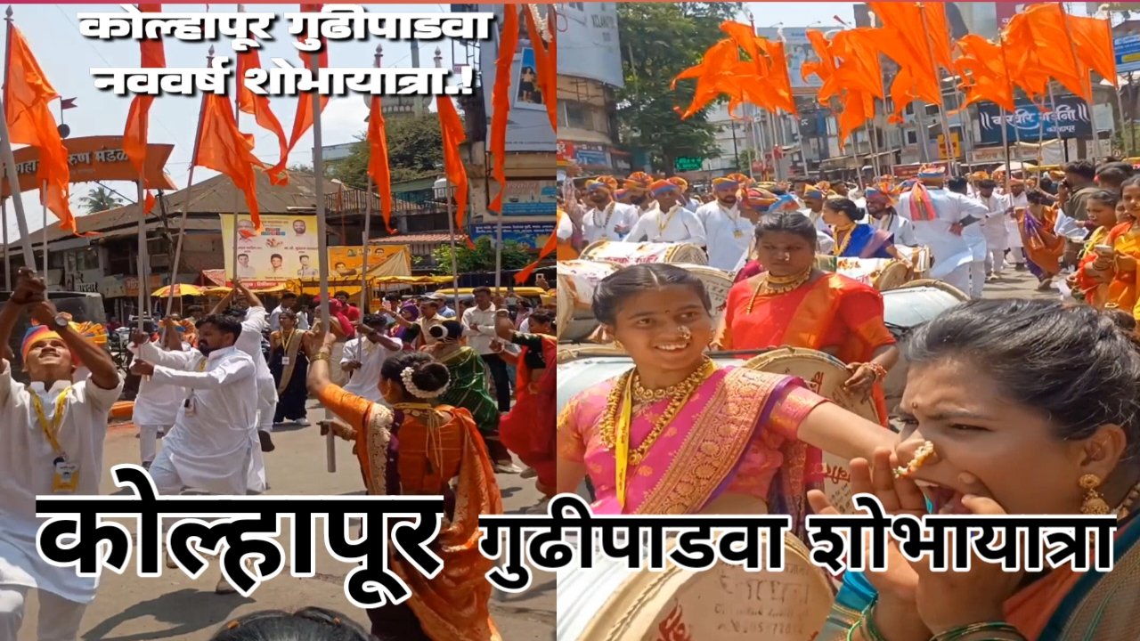 कोल्हापूर शहरांमध्ये आज गुढीपाडव्यानिमित्त निघालेली शोभायात्रा मिरवणूक ही अत्यंत उत्साही पारंपारिक पद्धतीने काढण्यात आली.